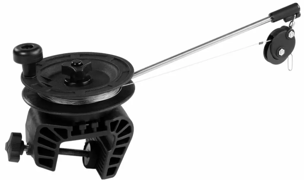 Best for Small Boats | Scotty Laketroller | 100 ft of steel cable, 2-inch aluminum clamp, 5-lb weight capacity | Ideal for smaller boats, made from nylon and steel |
