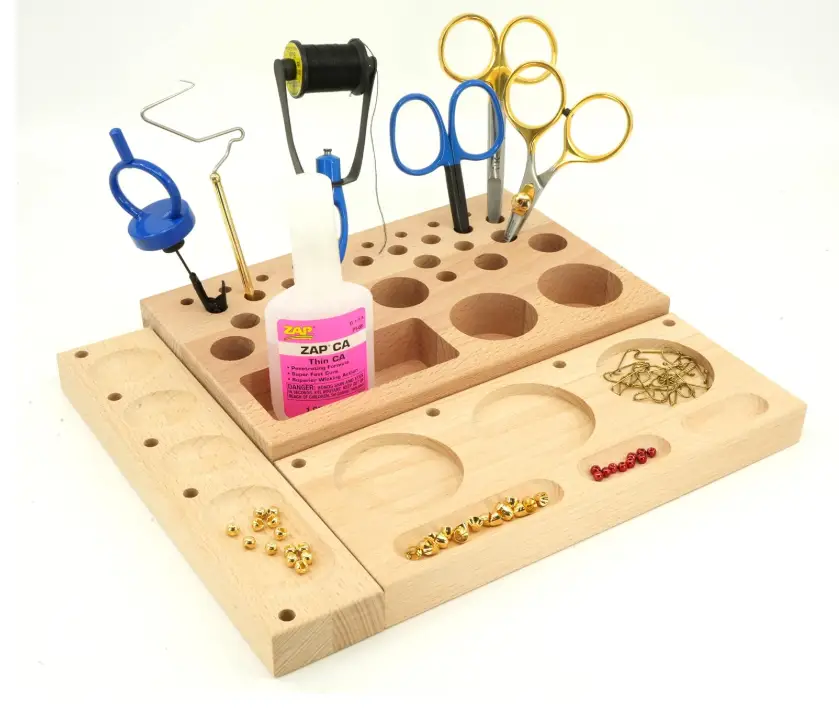 The hardwood Kingfisher Fly Tying Wooden Tool Station is what I crafted my fly tying station to be like.