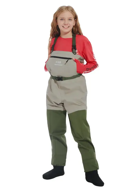 They’re lightweight, waterproof, and actually breathable—so kids stay dry without overheating. I’ve seen them used in creeks, lakes, and muddy banks, and they hold up well. Big plus—they’re easy to get on and off, which matters when you’re trying to get kids fishing quickly.